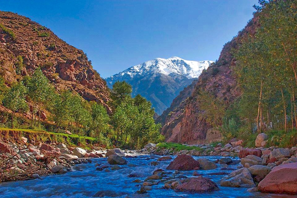 Salida desde Marrakech en dirección al valle de Ourika, atravesando paisajes espectaculares, pueblos bereberes tradicionales y extensos campos de cultivo que reflejan la vida rural del Alto Atlas. Durante el recorrido, realizaremos una parada en una casa bereber auténtica, donde tendrás la oportunidad de conocer el estilo de vida local, sus tradiciones ancestrales y compartir un té con una familia bereber, viviendo un momento de intercambio cultural único. Continuaremos hacia Setti Fatma, uno de los lugares más emblemáticos del valle, donde podrás disfrutar de una caminata guiada hasta las cascadas, rodeado de naturaleza, montañas y aire puro. Tras la caminata, dispondrás de tiempo libre para almorzar tranquilamente en un restaurante tradicional junto al río, disfrutando del sonido del agua y del entorno natural, antes de emprender el regreso a Marrakech al final de una jornada llena de descubrimientos, paisajes auténticos y experiencias inolvidables.